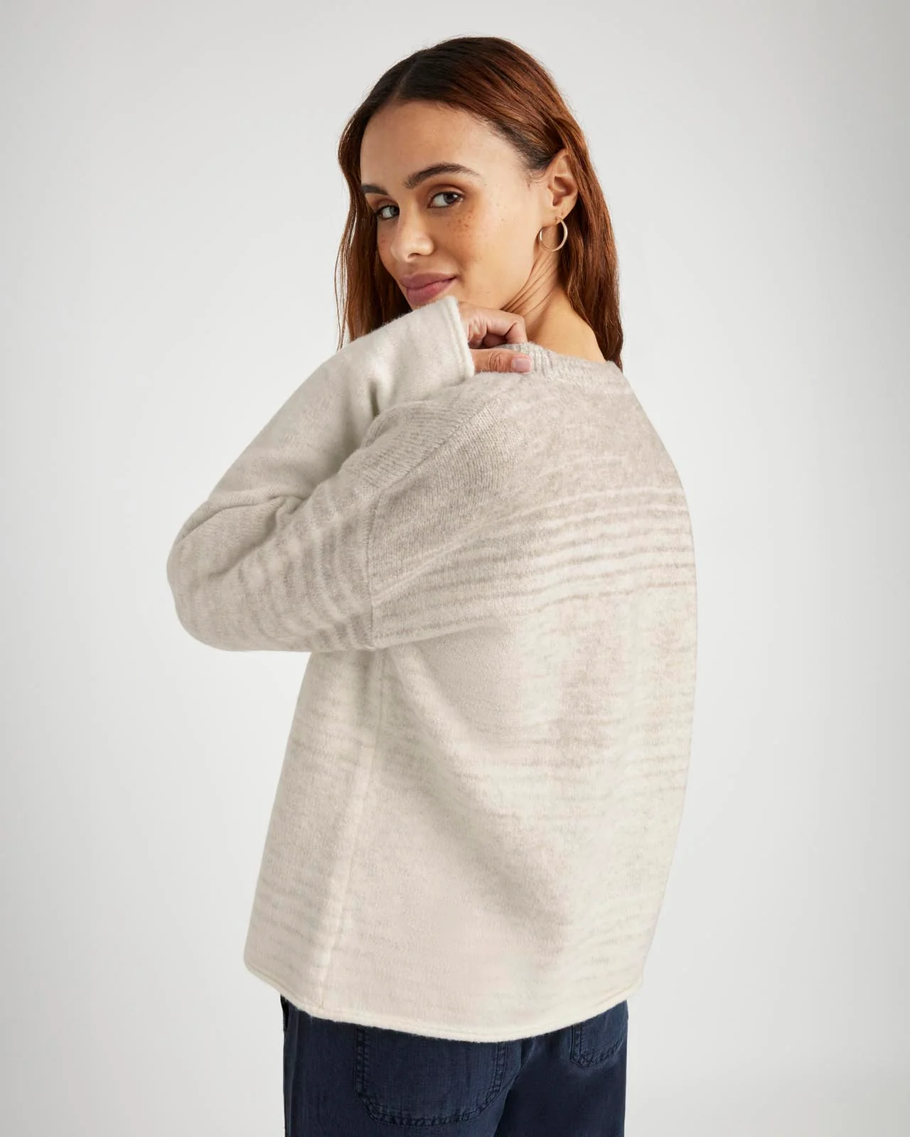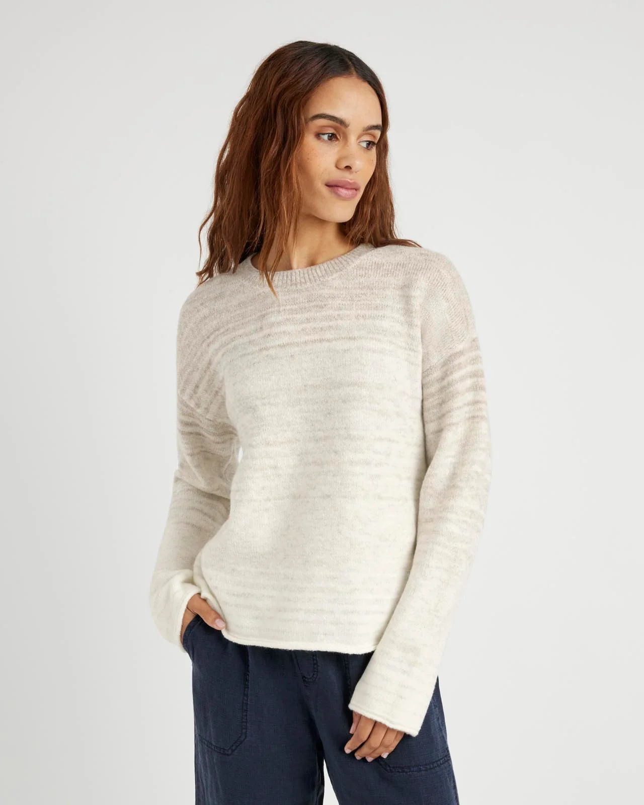 The charming Lydia Ombre Sweater is a perfect-for-the-season knit sweater crafted with a classic stripe pattern in a contemporary ombre technique from shoulder to hem. Wear with jeans, trousers or loungewear. Acrylic blend Crewneck Stripe design Ombre technique from shoulders to hem