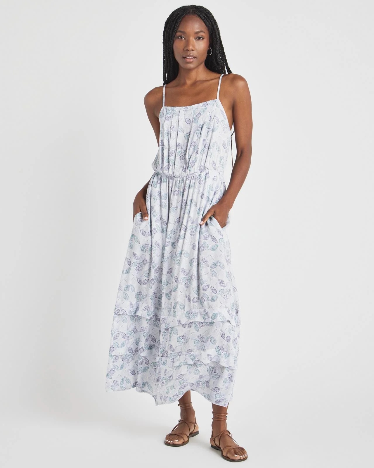 There's so much to love about our Seaside Dress– from its adjustable waist-tie (which is removable) to its dreamy tiered hem to its charming spring print. The back is smocked, the straps are adjustable and bonus points for the pockets. Clean square neckline Adjustable spaghetti straps Removable self-tie waist belt Spr