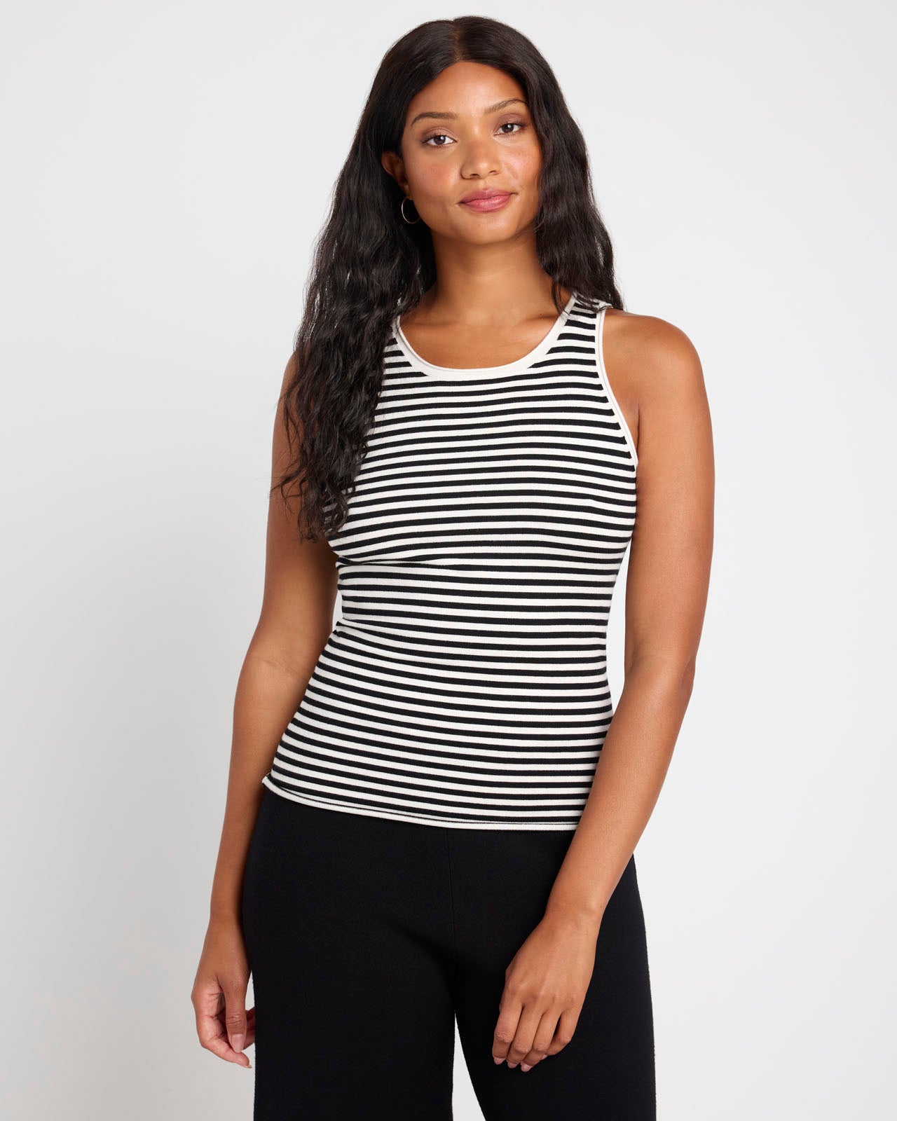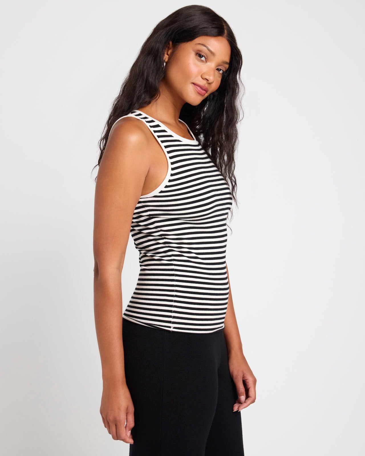 You'll reach for this stripe sweater tank during every chilly season. Made from a soft, thin knit with a round neckline, its bodycon fit allows you to layer it under chunky cardigans and coats. We like pairing it with the Splendid x @Cellajaneblog Open Cardigan. Limited-edition piece from the Splendid x @Cellajaneblog: